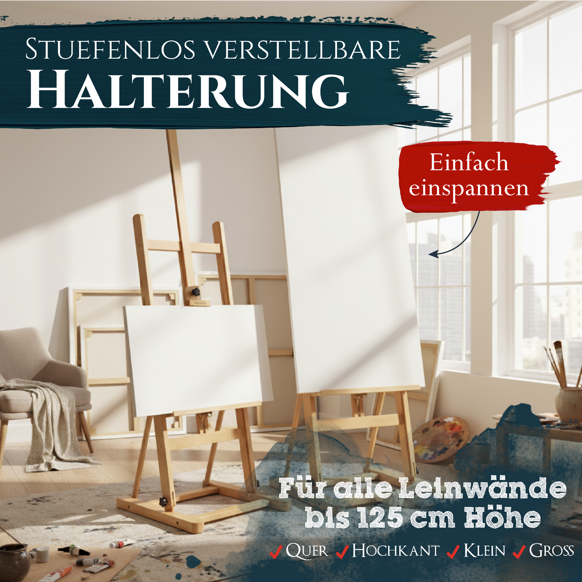 - Maximale Höhe der einspannbaren Keilrahmen: ca. 125cm Höhe
